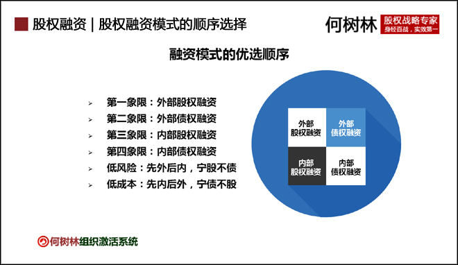 充分发挥股权的力量,实现融人、融资、融市场、融智慧、融资源,实现项目的快速发展。智慧的创业者,能够善用他人的力量,以股权作为最有力的杠杆,加速企业的发展。股权可以全方位的凝聚内部人才、市场渠道、资本方、行业平台,甚至竞争对手的力量。